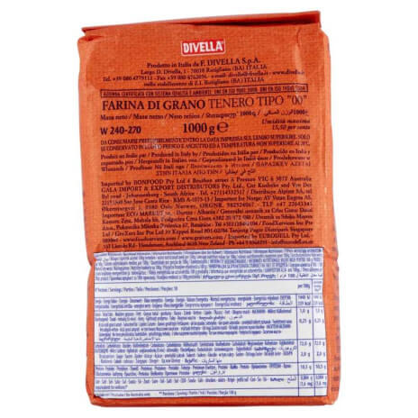 A Divella Farina Tipo „00” per Pizza egy kiváló minőségű, finomra őrölt lágy búzaliszt, amelyet kifejezetten pizzatészták készítéséhez fejlesztettek ki. Ideális választás közepes kelesztési idejű tésztákhoz, biztosítva a kívánt rugalmasságot és könnyű textúrát.