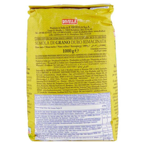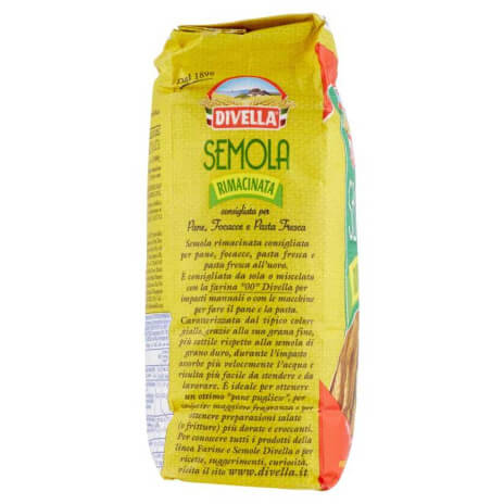 A Divella Semola di Grano Duro Rimacinata egy finomra őrölt, jellegzetes sárga színű durumbúzadara, amely ideális házi készítésű kenyér, focaccia, friss tészta és tojásos tészta készítéséhez. Finom szemcsézettségének köszönhetően a tészta gyorsabban szívja fel a vizet, könnyebben nyújtható és formázható, így tökéletes választás például a hagyományos „pane pugliese” elkészítéséhez.