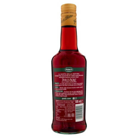 A Ponti Dolceagro di Melagrana egy különleges, alacsony savtartalmú édes-savanyú öntet, amely aromás szőlőmust, kiváló minőségű borecet és illatos gránátalma lé találkozásából született.