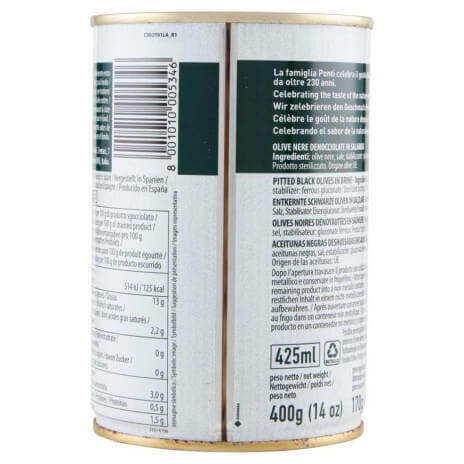 Összetevők: Fekete olívabogyó, Víz, Só, Színstabilizátor: vas-glükonát