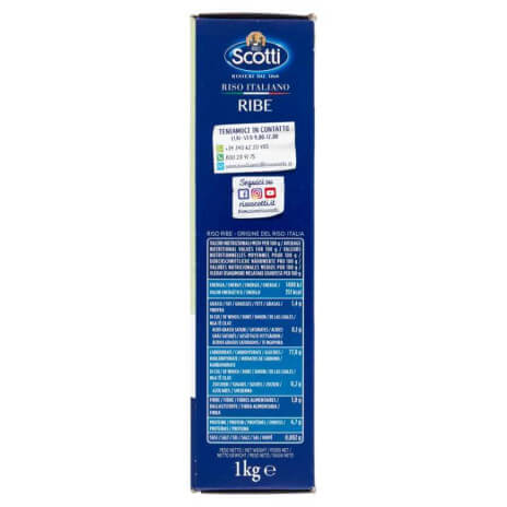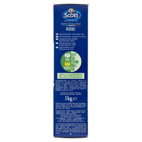 A Riso Scotti Ribe egy kiváló minőségű, hosszú szemű rizs, amelyet a híres Riso Scotti vállalat kínál 1 kg-os kiszerelésben. A Ribe rizs nevét Rinaldo Bersani-ról kapta, aki először választotta ki ezt a különleges fajtát. Jellemzője a finom, kristályos szemek, amelyek főzés után is jól elkülönülnek, így ideális választás különféle ételekhez.
